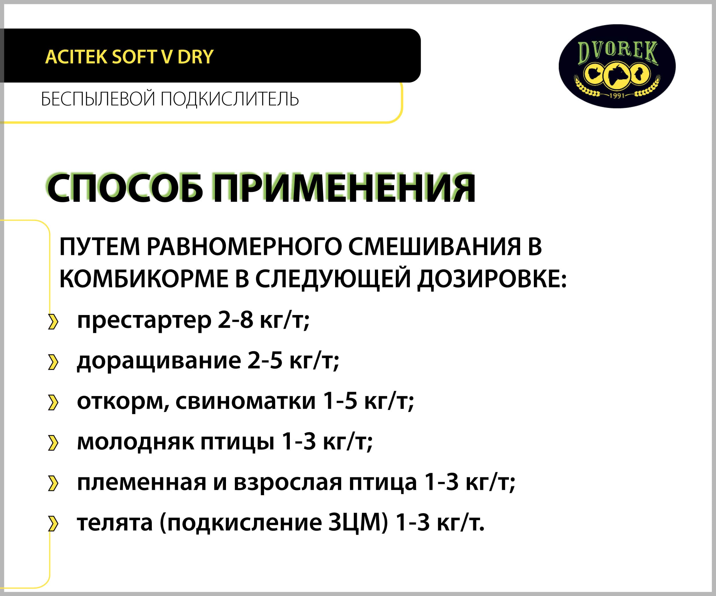 ACITEK SOFT V DRY – инновационный беспыльный подкислитель для свиней, птицы и телят.