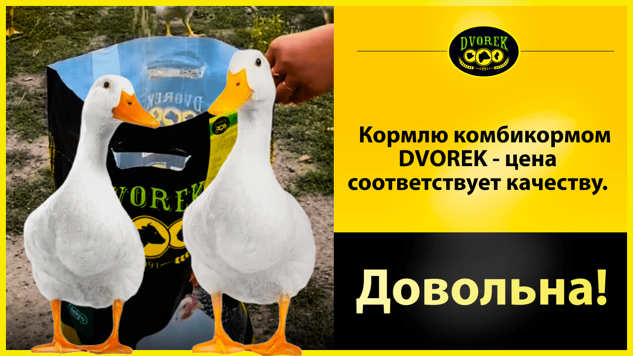 • Лучшие результаты для нас – это довольные и счастливые клиенты! Получили отзыв от клиента и с радостью делимся им с Вами: «Получила комбикорм торговой марки ДВОРЕК. Буду кормить свою птицу. Рекомендую довольна. Всегда заказываю комбикорм от ДВОРЕК: цена – соответствует качеству.»