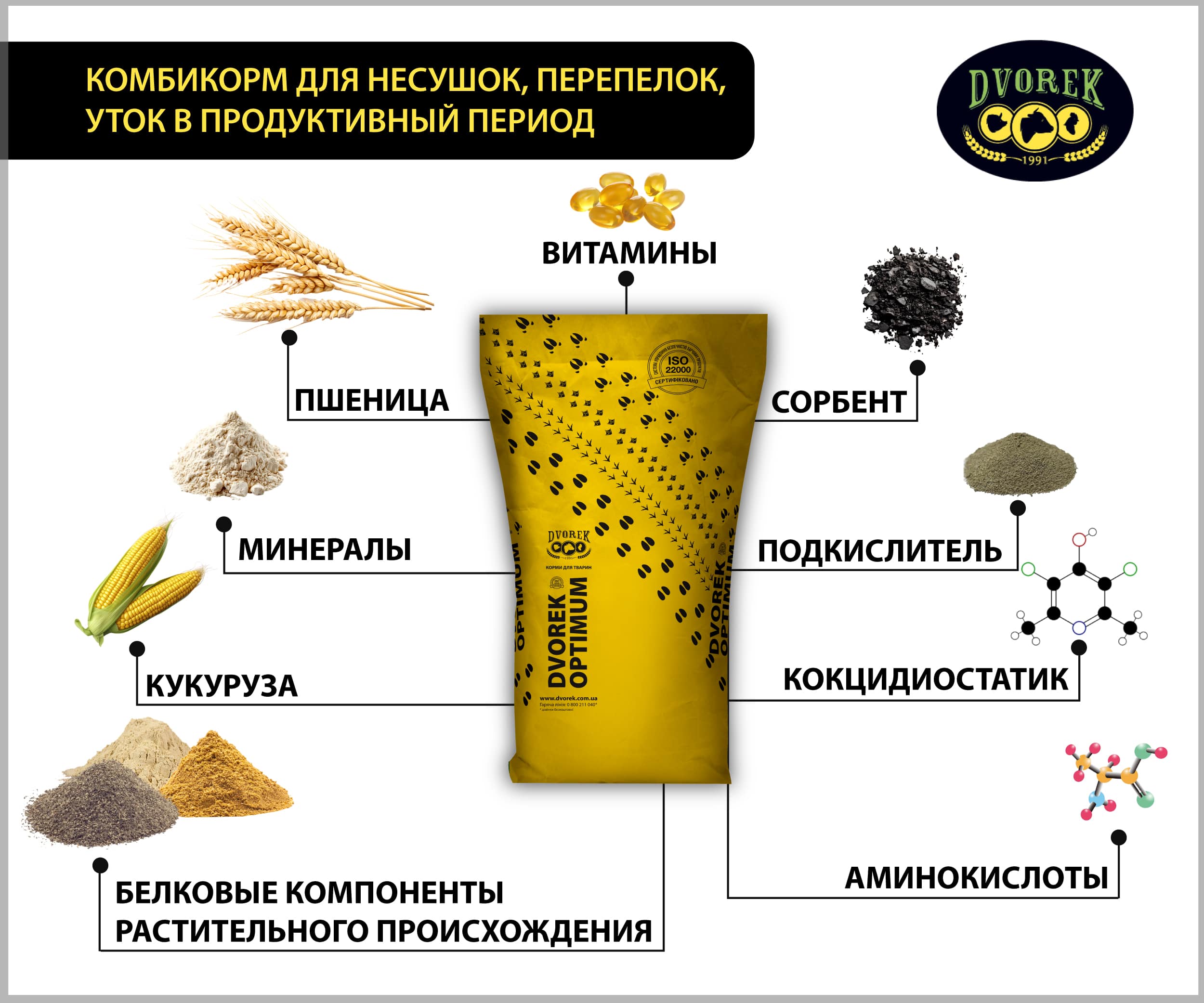 Все компоненты комбикорма проходят лабораторный контроль перед использованием в производстве, в результате чего конечный продукт высокого качества. Содержание протеина 16,5%.